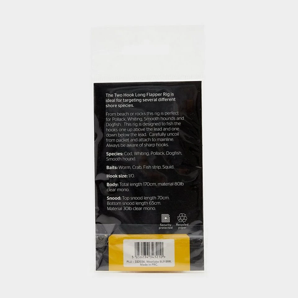 The Two Hook Long Flapper Rig is ideal for targeting several different shore species.