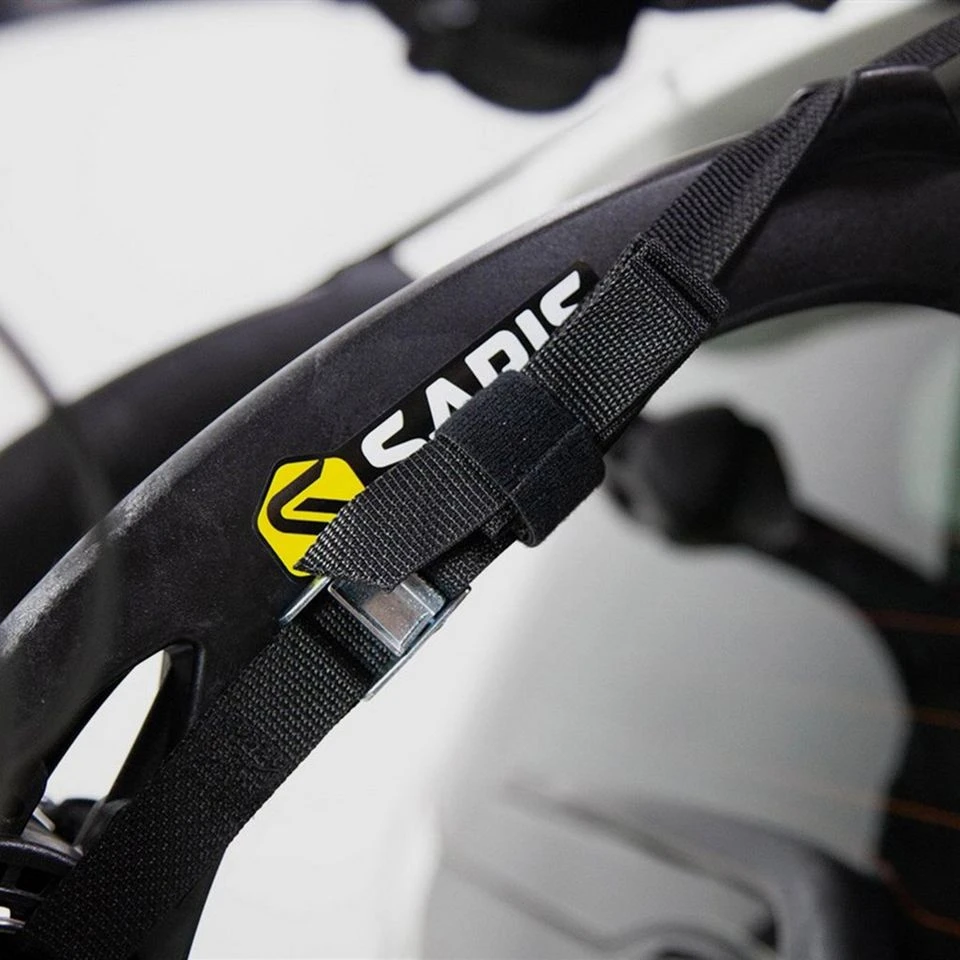 The Bones EX 3 uses an arc-shaped design to safely hold up to three bikes at different levels and features a handy strap cap to stop loose straps from flapping.
