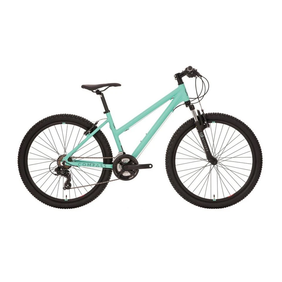 With a fresh updated look for 2020, the Compass Ladies’ Latitude bike boasts a solid step through frame making it easy to handle and manoeuvre. The suspension forks bring control and comfort to testing terrain and the powerful alloy V brakes bring you to a quick and controlled stop.